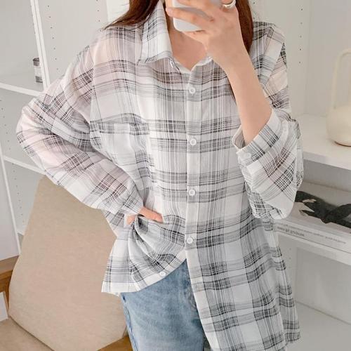 [다잇템][다잇템] 여자 SS 격자 큰사이즈 비침 레이어드용 아사남방 셔츠_20525285_588872