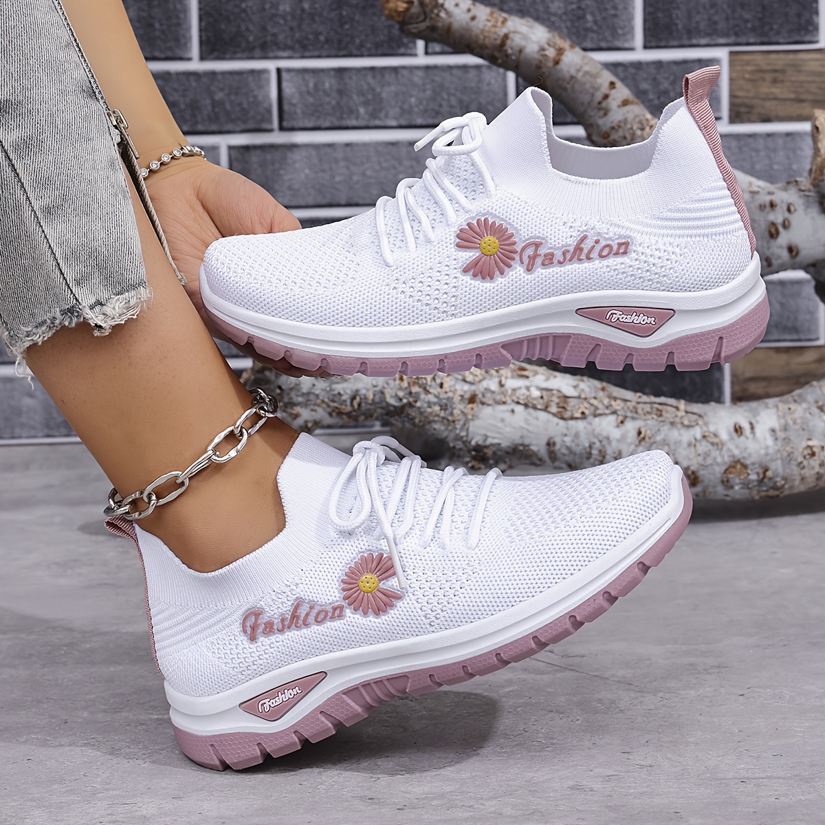 TEMU ZOSIVC 여성용 통기성 니트 캐주얼 스니커즈 - 가벼운, 편안한 화이트 로우탑 러닝화, 레이스업 클로저, 실내외 착용에 적합한 사계절용 캐주얼 신발 | 디자인 | 편안한 신발