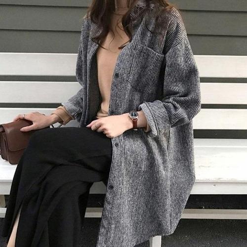 [엄지척]여성 외출 아우터 루즈핏 스타일 코듀로이 롱 셔츠_20342977_667501