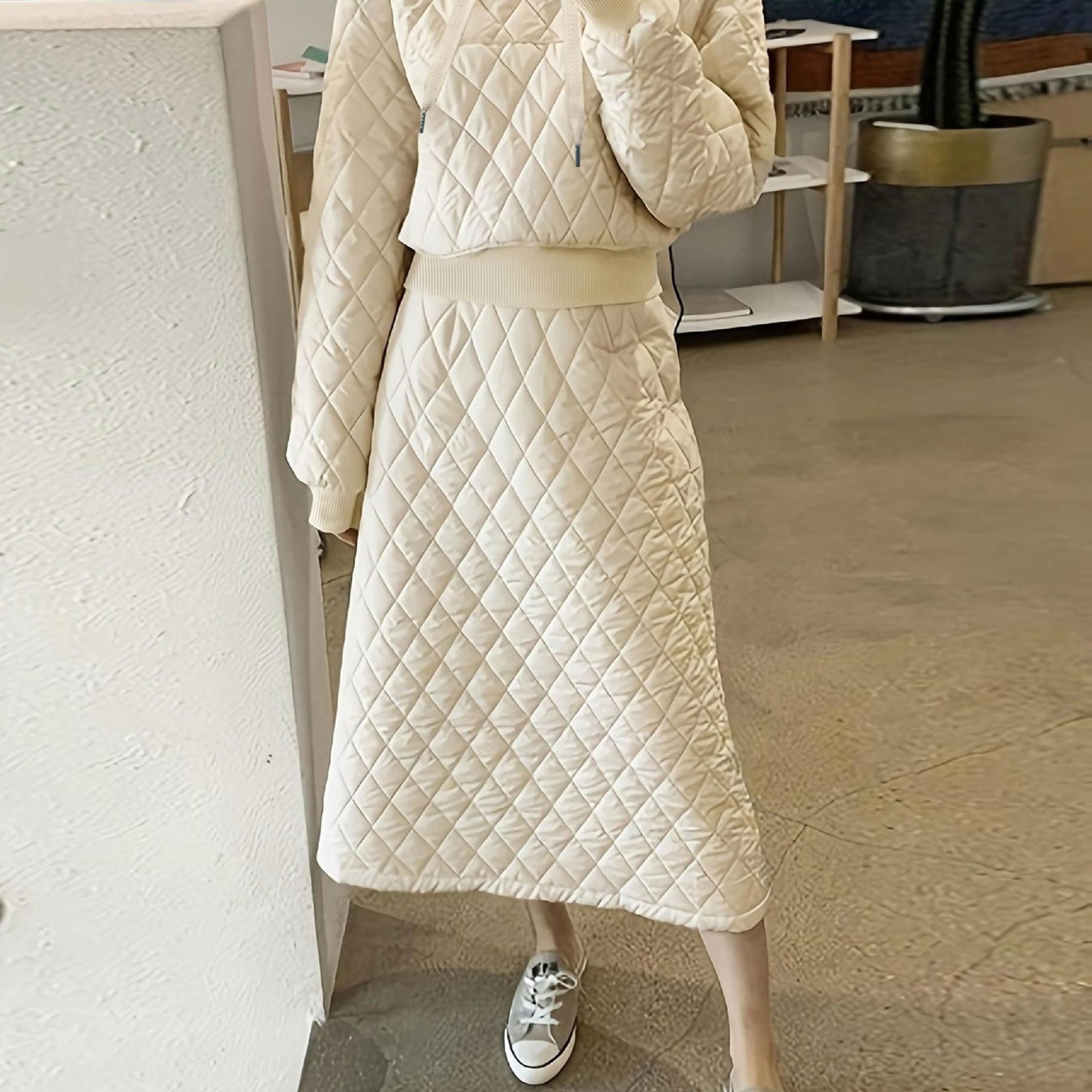 TEMU 겨울 의상에 완벽한 패딩 후드 스커트 세트, 2피스 구성