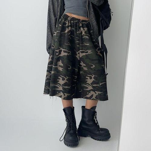 [옷자락] 여자 아메카지 컷팅 버뮤다 카모 와이드 밴딩 7부 바지