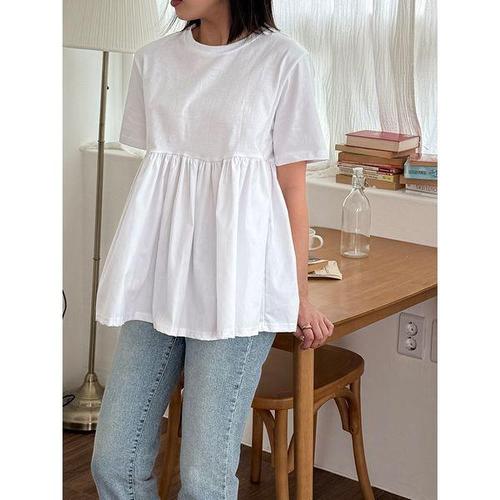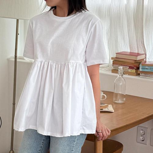 [샵앤][샵앤] 국산 여성 루즈핏 투톤 셔링 반팔 티셔츠 LL-WSH-4661-아이보리