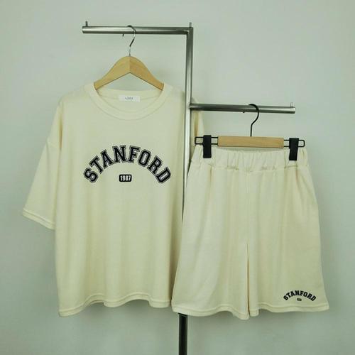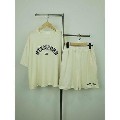 [샵앤][샵앤] 국산 여성 스탠포드 반팔 반바지 상하세트 LL-WSET-4662-아이보리