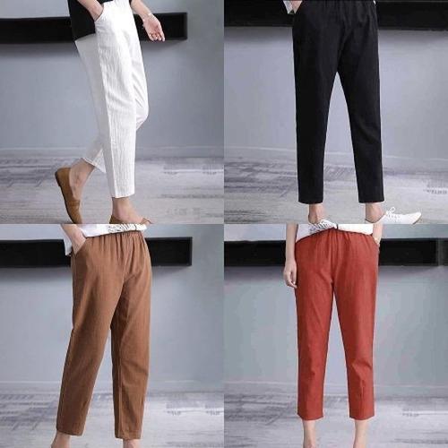 여자 여름 아이스 레드 블랙 코튼 슬랙스 팬츠