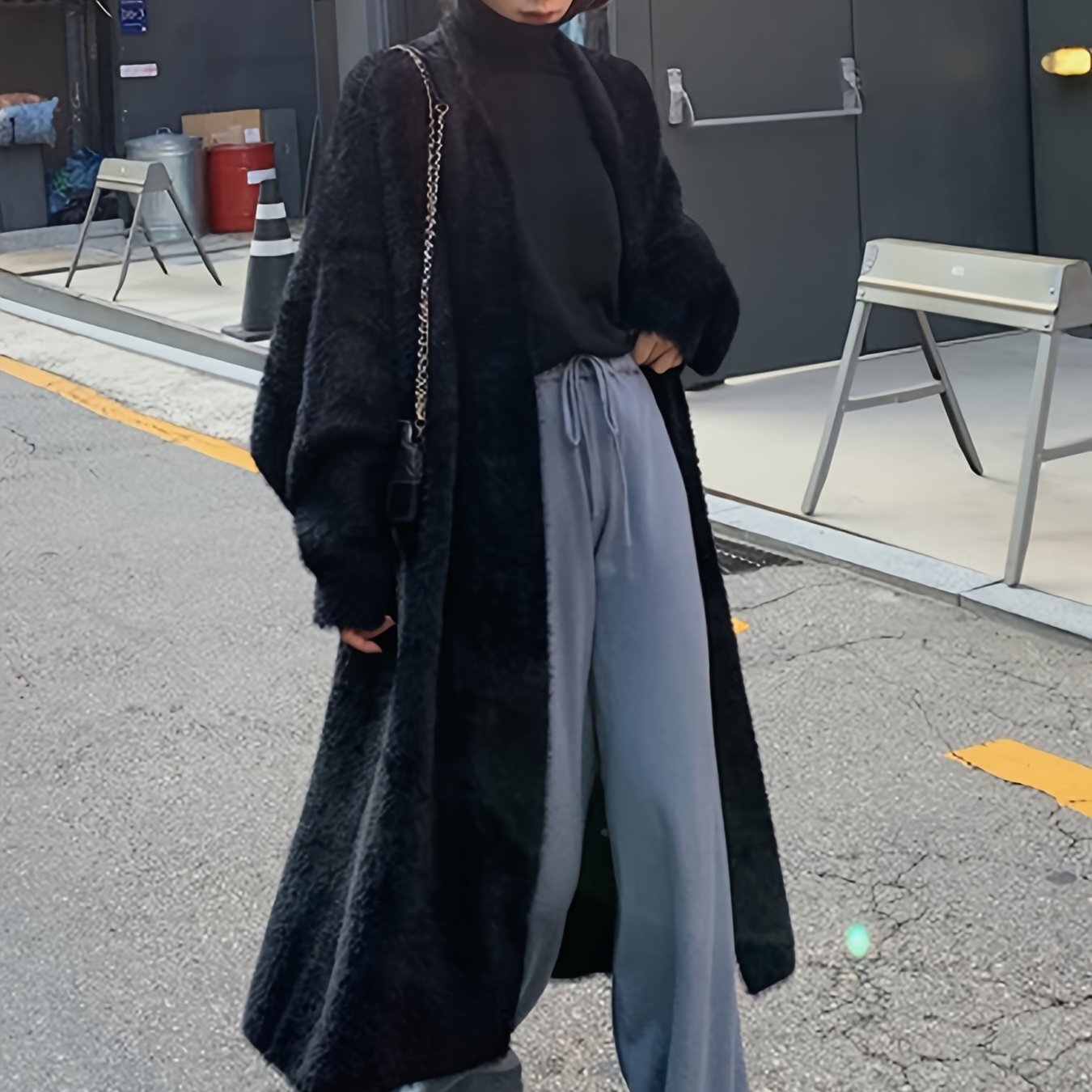 TEMU 여성용 솔리드 컬러 가을 겨울 패션 스트레치 플리스 편안한 롱 스웨터 카디건 코트 자켓