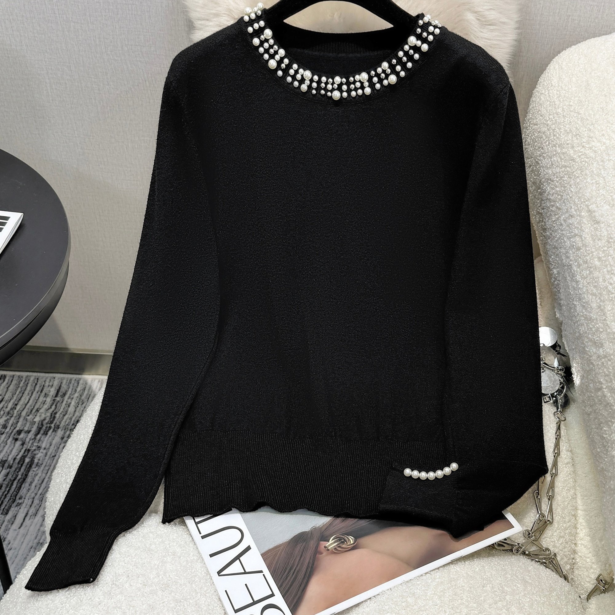 TEMU 여성용 비즈 장식 버튼 프론트 스웨터 재킷 - 화이트 롱 슬리브 라운드 넥 칼라 , 사계절 캐주얼 & 포멀 웨어, 미디엄 스트레치 탑 (벨트 없음), 드레스, 블라우스, 스마트 캐주얼 룩에 적합