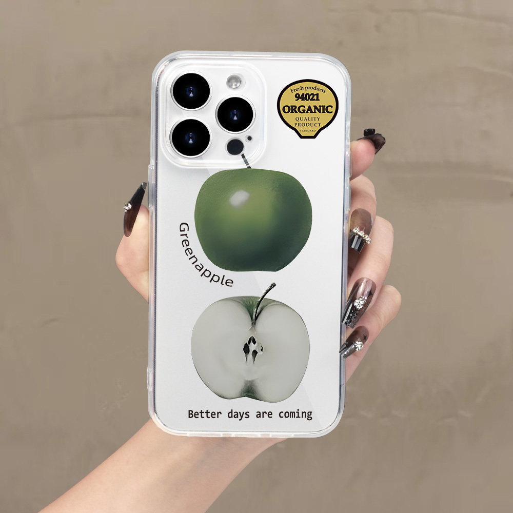 TEMU 폰케이스: 그린 애플 컷 고급스러운 패턴 투명 옐로우 폰케이스 정교한 패턴 충격방지 폰케이스 심플하고 내구성 있는 폰케이스 클래식 시리즈 아이폰15 14 13 12 11 XR XS XsMax 8 7 Pro Plus Max용