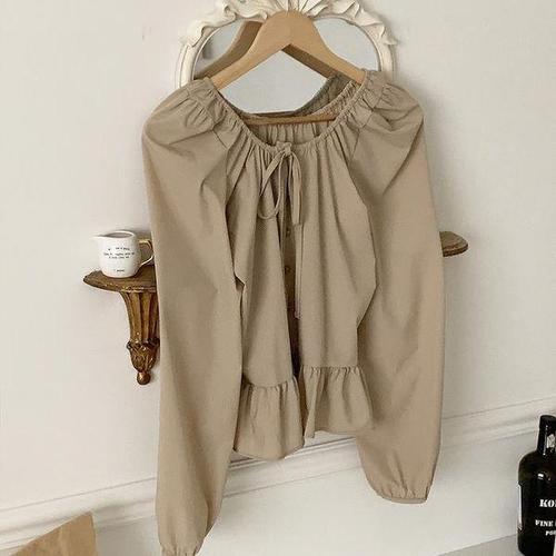 [셀러허브_여성트랜드패션]아이우먼 스모크셔링리본블라우스 MOQ068M 510 빅사이즈