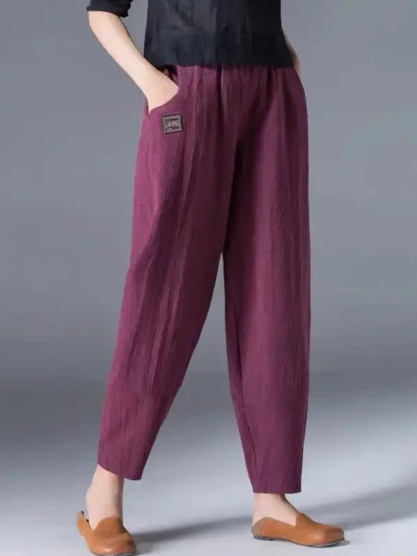 TEMU 여성 여름 데일리 패션 하이웨스트 밴딩 얇은 통기성 체크 9부 슬랙스 바지 캐주얼 컴포트 와이드 팬츠 슬림소녀 SLIM GIRL