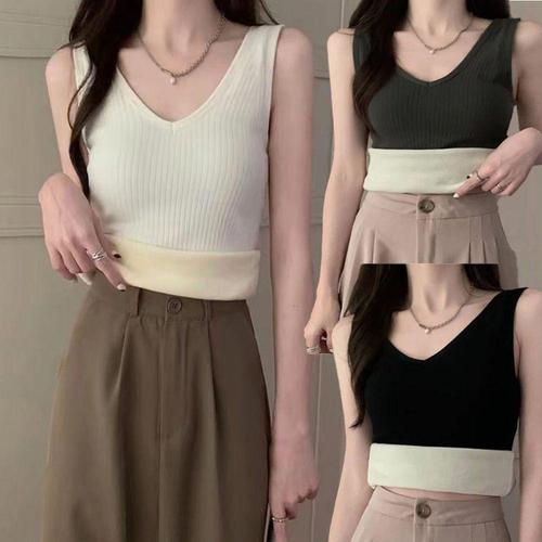 여성 겨울 V넥 기모안감 민소매 이너 보온 나시티 (WD73B4B)
