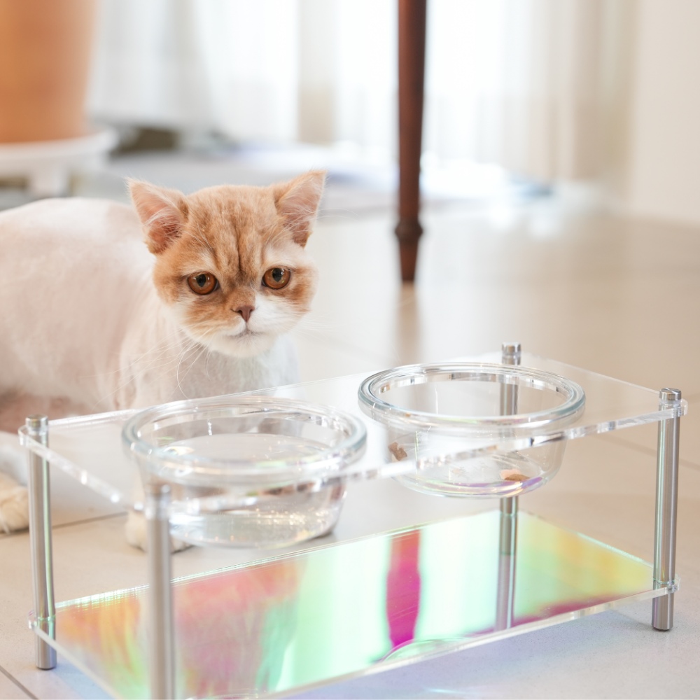반려동물 홀로그램 아크릴 식기 높이조절 모듈형 강아지고양이 식기 밥그릇 식탁