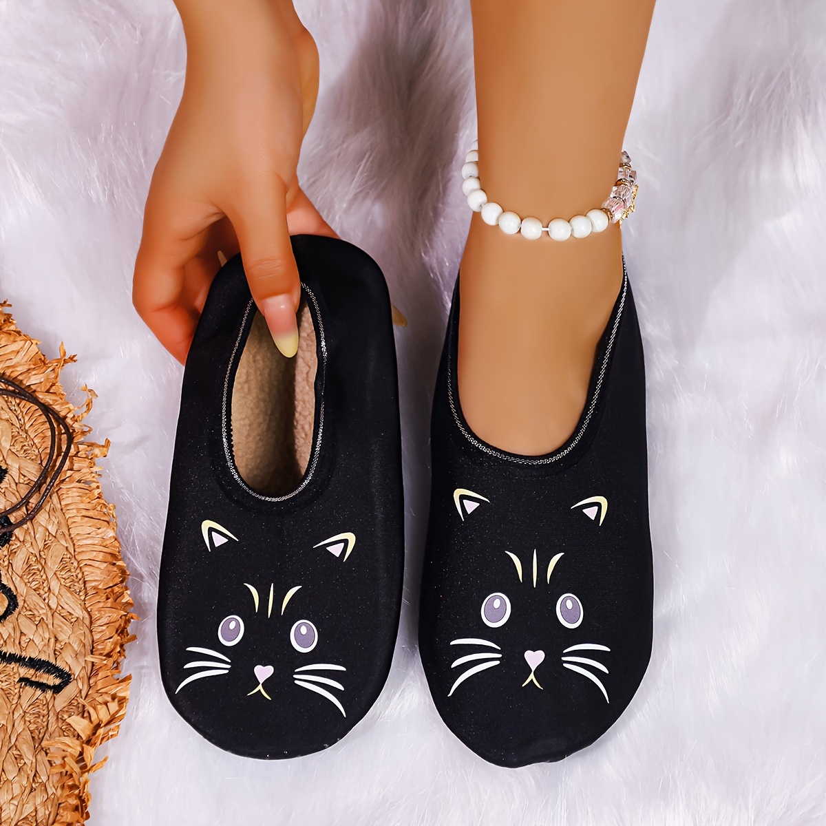 TEMU 여성용 미끄럼방지 실내화 - 귀여운 블랙 캣 페이스 슬리퍼, 부드러운 소재 올시즌 홈웨어, 거실·침실용, 쉬운 세탁 가능, 내구성 있는 미끄럼 방지 밑창, 트렌디한 디자인, 기계 세탁 가능한 편안한 집화