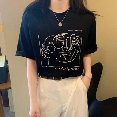 [오노마] ONM 드로잉아트 반팔 티숙 LM0427 라운드 티숙 밴드 여성