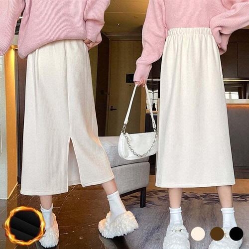 ONM 여성 겨울 트임 골지 융 기모 안감 밴딩 스커트 치마