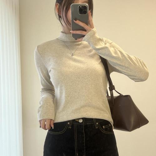 엘케이트 여자 겨울 미니멀 앙고라 울 혼방 슬림 레이어드 이너 폴라티 LFL008