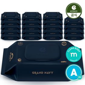 [맘가이드 클린A등급/80초고평량 20팩]앙블랑 아기물티슈 그랜드 네이비 캡형 70매X20