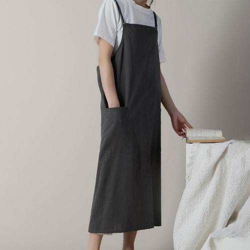 여자 미니멀리즘 원컬러 민무늬 흰색 앞치마