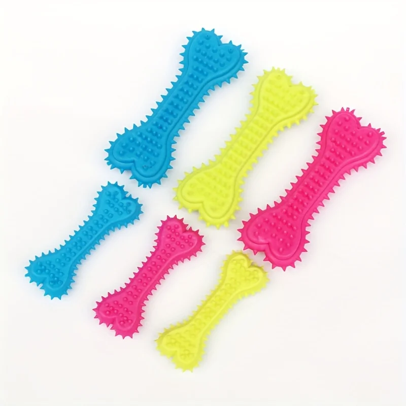 3개 고무 뼈 모양 강아지 장난감, 외계인 강아지 씹기 장난감, 내구성 있는 고무 칫솔 스틱, 휴대하기 쉬움