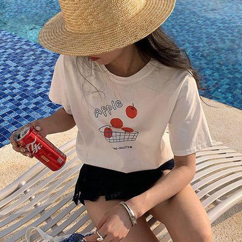반팔티 사과 과일 애플 신선해 프린트티셔츠