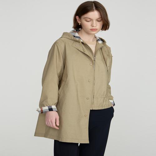 [후드 베스트 SET] 카키 트윌 조직 체크 배색 볼륨 소매 야상 점퍼 (DLJU5B203K2)