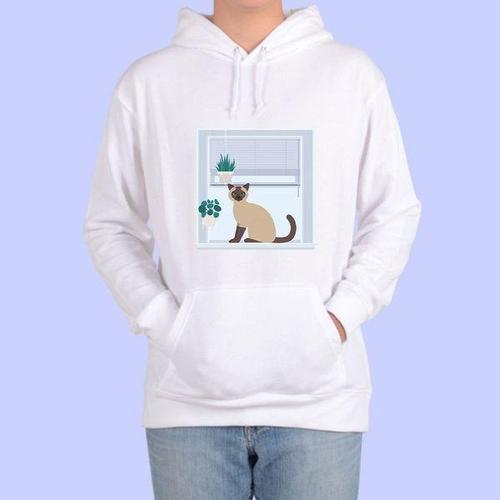 [에이치플러스몰]창가에서 후드티 남여공용 집지키는 야옹이 여자후드