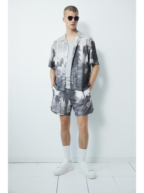 [에이치엔엠] 프린트 메쉬 쇼츠 레귤러핏 그레이/야자수 1275901001