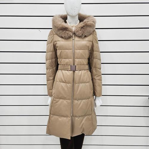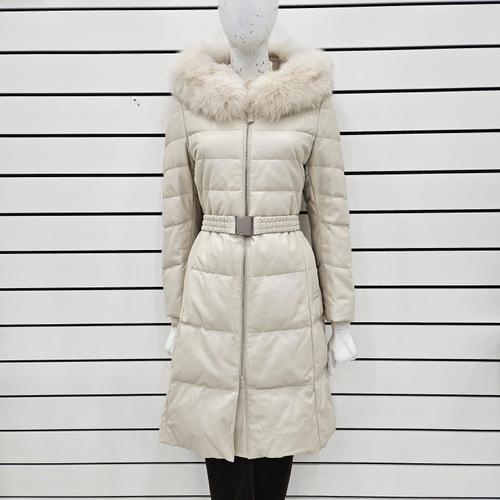 갤러리아_[24F/W]특가 양가죽 폭스퍼후드 벨티드 구스다운롱코트(BJHJY8698)