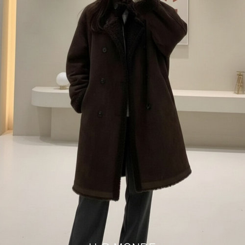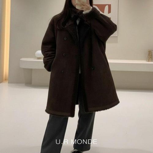 [유아몽드]U.R MONDE 고급 스웨이드 양털 롱 코트 더블 버튼 시