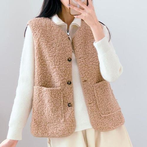 양털 퍼조끼 여성 겨울 자켓 경량 보온 루즈핏 털조끼