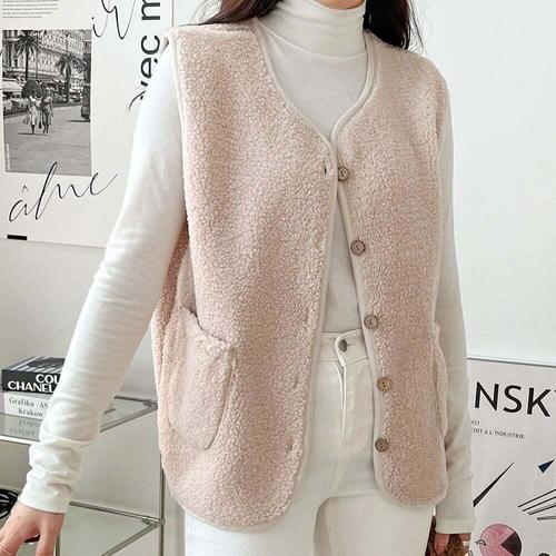 [셀럽하우스]라운드넥 NXYV8322 양털 베스트 포켓 베이직 간절기 여성