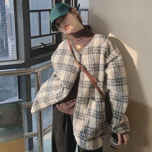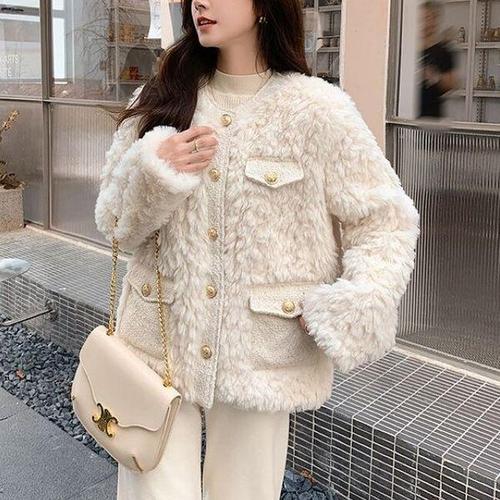 (우아한 추천) 여성 빅사이즈 라운드넥 뽀글이 털코트 자켓 겨울 날씬해보이는 슬림핏 융털 후리스 아우터 따뜻한 외출 큰옷 여성의류 3xl 단아한 루즈핏 데일리 퍼 숏 잠바 77