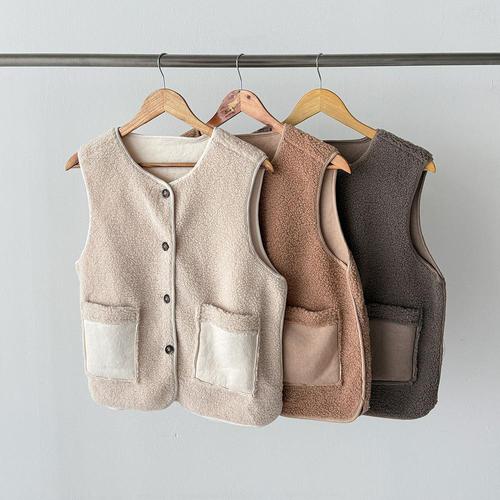 [옷자락] 여자 뽀글이 배색 스웨이드포켓 단추 겨울 양털 조끼