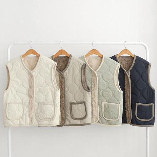 [옷자락] 여자 뽀글이 물결 퀼팅 포켓 베이직핏 겨울 양털 조끼