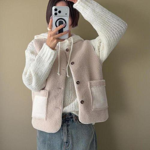 [신상오픈런]여성 양털 조끼 배색 스웨이드 포켓 단추 겨울용 뽀글이