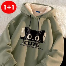 AOUGK 1+1 남성 양털 기모 후드티 캐릭터 후드 맨투맨 빅사이즈 긴팔 티셔츠 오버핏 겨울 코트 남녀공용