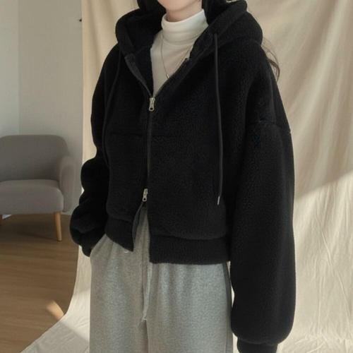 [옷자락]여성용 양털 후드 크롭 자켓 데일리 뽀글이