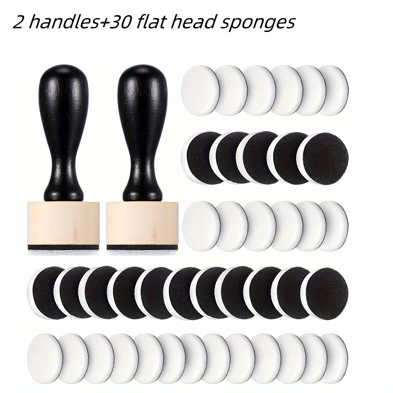 TEMU 전체 판매 라운드 잉크 혼합 도구 - 30개 교체 스폰지 폼 패드, 2개 미니 코팅 도구, 예술 용품, 공예 및 서예에 이상적, 공예 용품|스폰지 고무 패드|목재 손잡이 브러시, 잉크 브러시