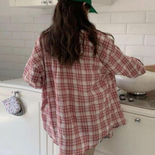 [에이치플러스몰]오버핏 숙 핑크 긴팔 블라우스 블라우스 박시 비치 롱숙 루즈핏 남방 원피스 숙 겨울 남..