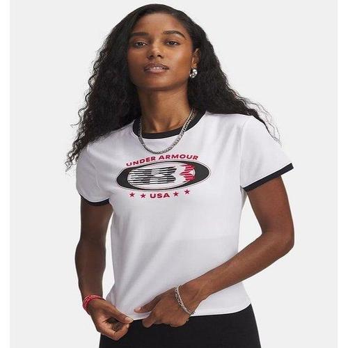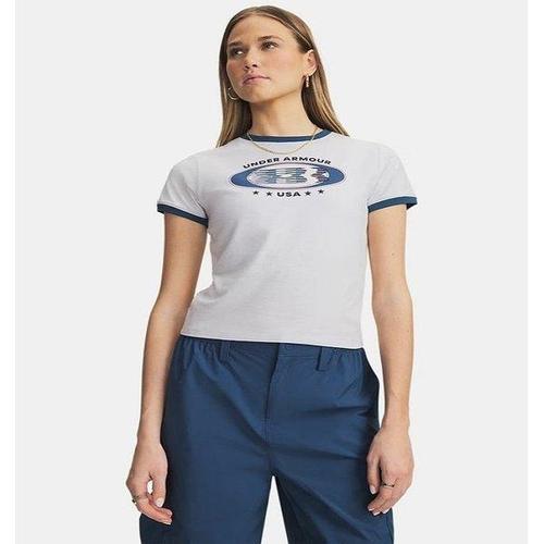 언더아머반팔티 LQK 1389156-101 여성 UA 바시티 믹스 헤비웨이트 크롭 반팔