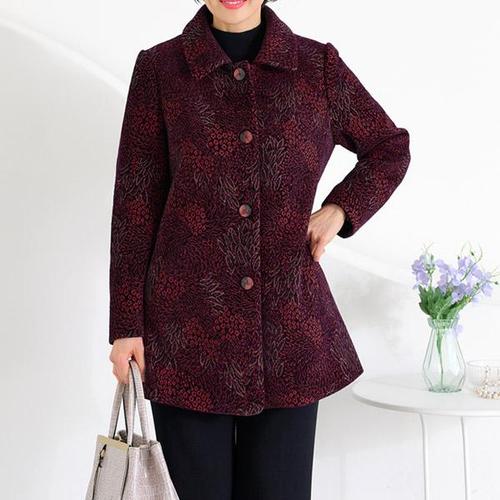 중년 여성 모직 자켓 엄마복 울 코트 가을 겨울 짧은 스타일 클래식 자켓 YXF