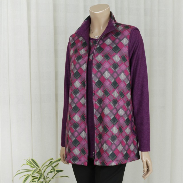 [리비에르] 중년 프리미엄 여성의류 엄마옷 마담 빅사이즈 프린트 기모 반목 터틀넥 롱티셔츠 퍼플