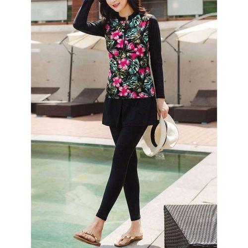 [베이직 엘르]베이직엘르 여성인 반집업 래쉬가드 3종세트 엄마래쉬가드 중년 실버수영복 BEL-T214K