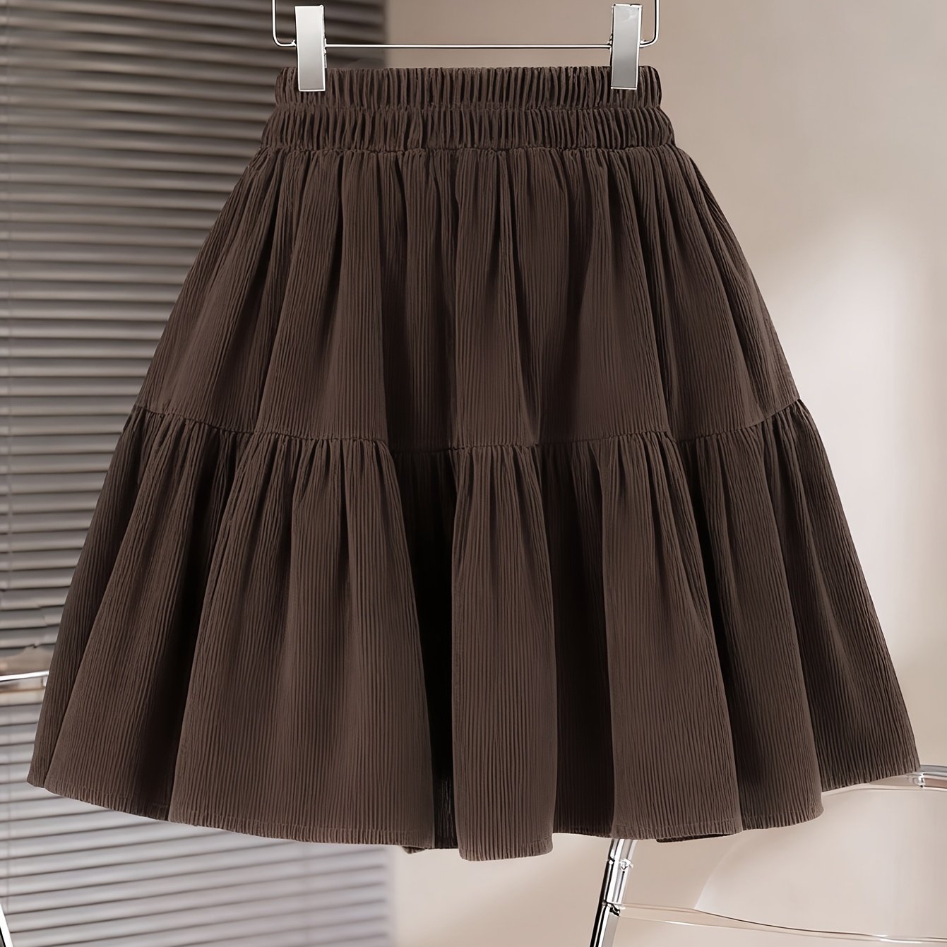 TEMU 포켓이 달린 우아한 브라운 코듀로이 스커트 | 편안하고 스타일리시하며 캐주얼 또는 포멀 웨어에 적합, 올 시즌 솔리드 컬러 숏 기장 스커트