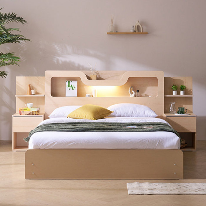 파로마 아벨라 호텔식 LED 멀티수납 침대프레임 Q/K + 협탁 1ea