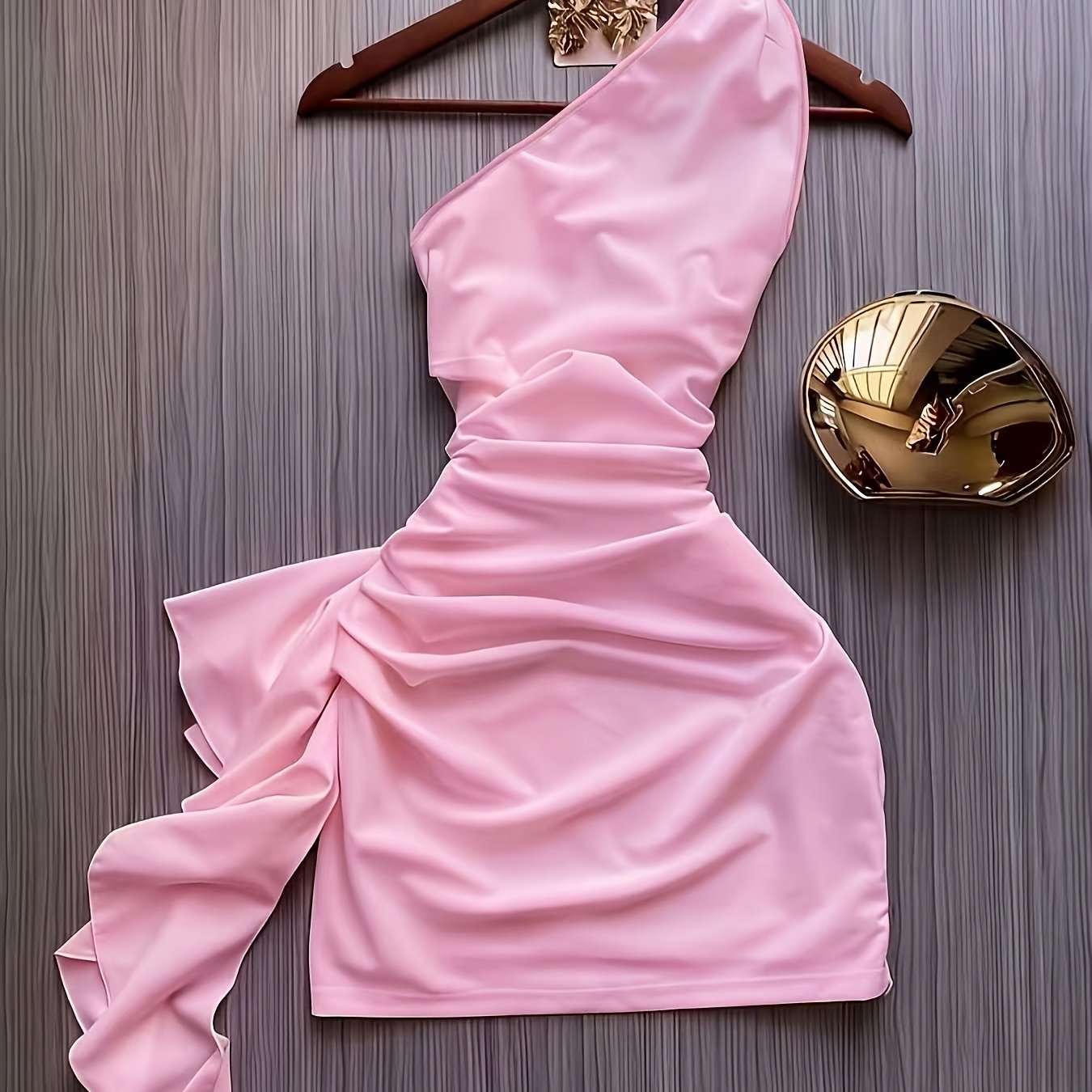 TEMU 여성용 오프숄더 디자인 사이드 타이 디테일 단색 슬림핏 힙핏 섹시하고 귀여운 미니 원피스