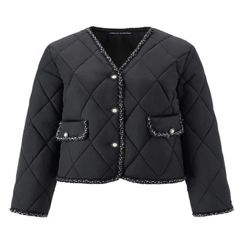 [미니멈에브리데이][미니멈 에브리데이]프렌치 시크 배색 브이넥 퀼팅 점퍼 (EB4JJ022D)