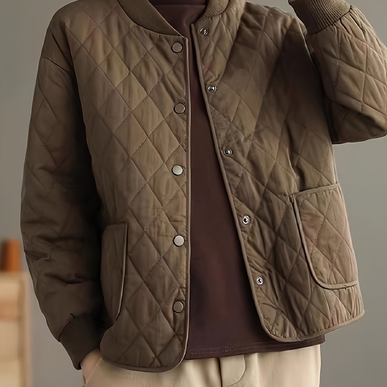 TEMU 신상 가을/겨울 빈티지 야구 스타일 퀼팅 재킷, 루즈핏 및 얇은 안감.