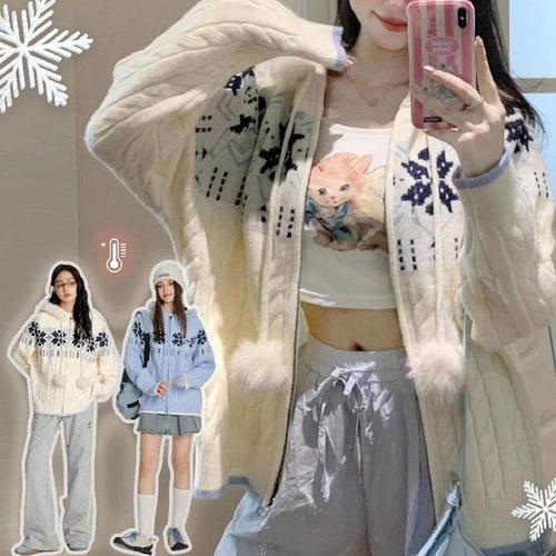 [에어플레인]엔젤 눈꽃 꽈배기 후드집업