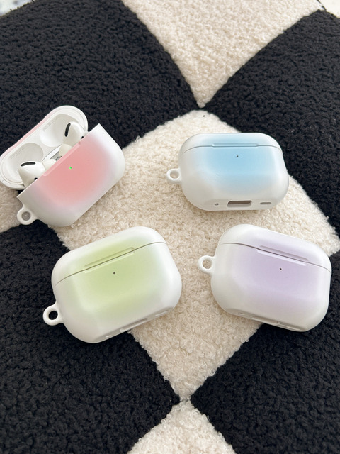 [모나니 스튜디오] [에어팟/버즈] 블러 그라데이션 블루 핑크 그린 퍼플 에어팟 프로 3 2 4 버즈 프로 투명 하드 이어폰 케이스 airpods case