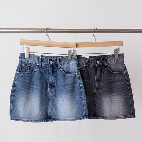 여성 FW 데님스커트 워싱 에이라인 미니스커트
